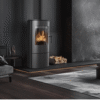 Sobă pe lemne KRATKI ROLLO HIGH termotec negru este un șemineu modern, cu ușă verticală glisantă, ideal pentru interioare contemporane. Designul său înalt pune accent pe flacăra vizibilă, oferind un efect vizual elegant și o distribuție eficientă a căldurii. Construit din oțel de înaltă calitate și dotat cu sticlă termorezistentă, asigură siguranță, durabilitate și randament termic ridicat. Perfect atât ca sursă de încălzire, cât și ca element decorativ central.