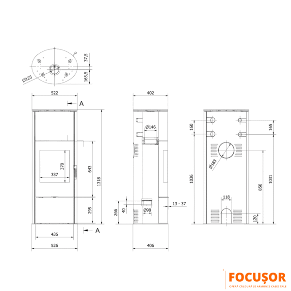 Compartiment pentru depozitarea lemnelor – oferă acces rapid la combustibil și adaugă un plus estetic, contribuind la o atmosferă caldă și primitoare.